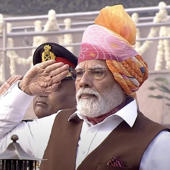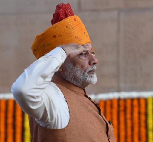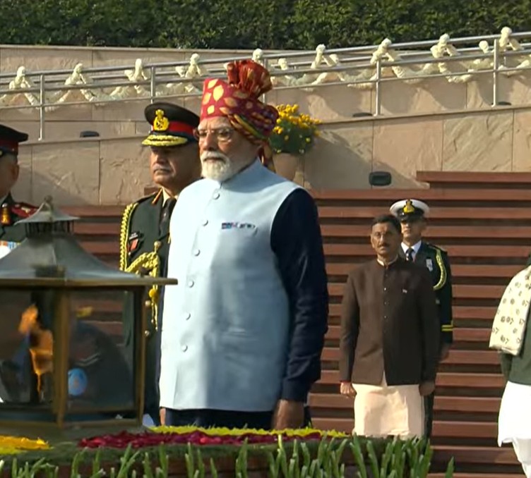 सोमवार को भारत ने अपना 77वां गणतंत्र दिवस मनाया, इस अवसर पर प्रधानमंत्री मोदी अपने विशिष्ट अंदाज में एक आकर्षक पारंपरिक पोशाक पहनकर नई दिल्ली स्थित राष्ट्रीय युद्ध स्मारक पहुंचे।