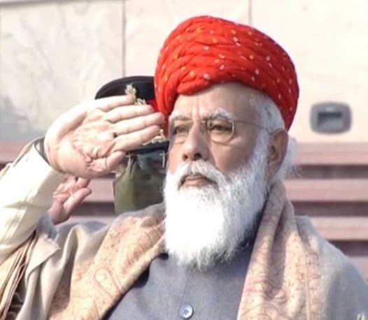 वर्ष 2021 के लिए, पीएम मोदी ने गुजरात के जामनगर के शाही परिवार द्वारा उन्हें उपहार में दी गई एक विशेष जामनगर पगड़ी पहनी थी, जिसके साथ उन्होंने ग्रे जैकेट, कुर्ता और पायजामा पहना था।