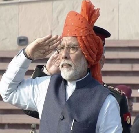 70वें गणतंत्र दिवस के अवसर पर, प्रधानमंत्री ने हरे और सूक्ष्म सुनहरे रंग की रेखाओं से सजी लाल पूंछ वाली पीली पगड़ी पहनी थी, और अपने पहनावे को बिना आस्तीन वाली बंदगला जैकेट और सफेद कुर्ते के साथ पूरा किया था।