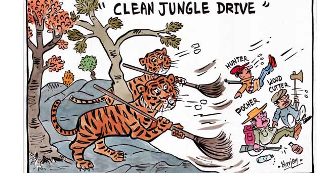 केंद्रीय इस्पात और खनन मंत्री श्री नरेंद्र सिंह तोमर ने दिल्ली के प्यारे लाल भवन की आर्टीज़न आर्ट गैलरी में आयोजित इस प्रदर्शनी का उद्घाटन किया। बाघों पर आए अस्तित्व के संकट और उनकी व्यथा को 52 कार्टूनों के माध्यम से हरिओम ने अभिव्यक्त किया गया।