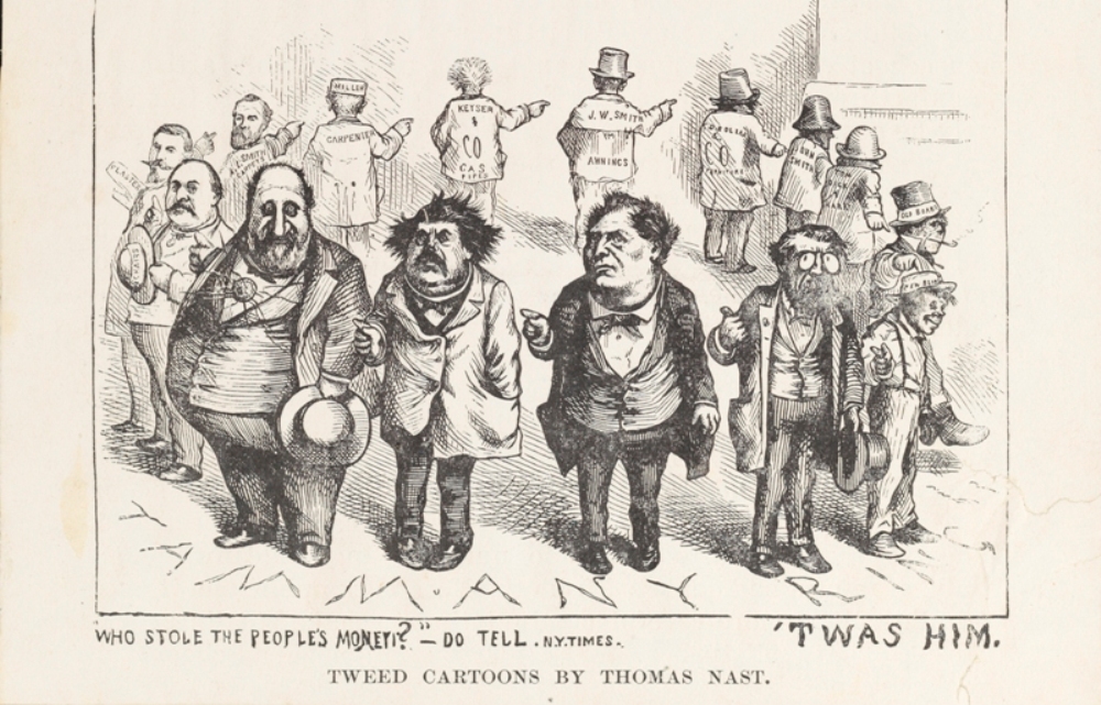 ट्वीड अपने गले में एक हीरे का लॉकेट पहनता था, जिसे लेकर थॉमस नैस्ट ने ट्वीड पर शुरुआती कार्टून बनाए। 1869 के चुनाव के बाद ट्वीड का न्यूयॉर्क पर पूरी तरह शासन हो गया था। ट्वीड और उससे जुड़े लोगों को 'ट्वीड रिंग' कहा गया। इधर, नैस्ट ने ट्वीड रिंग पर कार्टून बनाना जारी रखा। उन्होंने टैमनी टाइगर से ट्वीड के समय के भ्रष्ट माहौल को दिखाना शुरू किया।