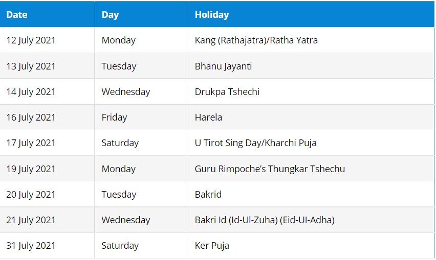 जुलाई 2021 में बैंक अवकाश की पूरी सूची-