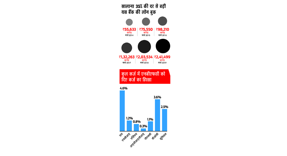 यस बैंक की समस्या का प्रमुख कारण कर्ज का तेजी से बढ़ना है। 2014 में बैंक का कुल कर्ज 55,633 करोड़ था जो 2019 में 2.41 लाख करोड़ रुपये हो गया। बैंक ने तेज ग्रोथ के लिए कॉरपोरेट को कर्ज देने का मॉडल अपनाया। 2008 के आर्थिक संकट के बाद बैंक कंपनियों को कर्ज देने में सख्ती बरत रहे थे। जिनको दूसरे बैंकों से कर्ज नहीं मिला, उन पर कपूर ने कृपा दिखाई। बैंक का 80% कर्ज कंपनियों को है, रिटेल कर्ज का हिस्सा सिर्फ 20% है। एनपीए छिपाने के लिए भी कपूर ने रास्ता अपना रखा था, जिसे लोन की एवरग्रीनिंग कहते हैं। जब कोई कंपनी लोन डिफॉल्ट करने वाली होती थी तो कपूर किसी एनबीएफसी से उस कंपनी को लोन देने को कहते। कंपनी यस बैंक को रकम दे देती थी, जिससे यस बैंक का कर्ज एनपीए होने से बच जाता था।