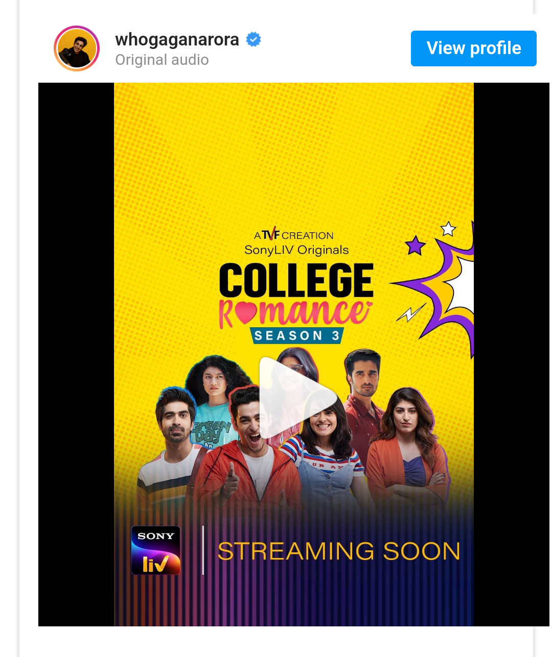 ओटीटी प्लेटफॉर्म की सफल वेब सीरीज "कॉलेज रोमांस" का तीसरा सीजन बनकर तैयार हो चुका है। इसे 16 सितंबर 2022 को ओटीटी प्लेटफॉर्म सोनी लिव एप पर रिलीज किया जाएगा।