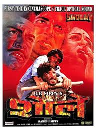 निर्देशक रमेश सिप्पी की फिल्म। सलीम जावेद की स्क्रिप्ट। आर डी बर्मन का संगीत। आनंद बख्शी के गीत। मुख्य भूमिका अमिताभ बच्चन, हेमा मालिनी, जया बच्चन, धर्मेन्द्र, अमजद खान, संजीव कुमार ने निभाई। फिल्म सुपरहिट साबित हुई।