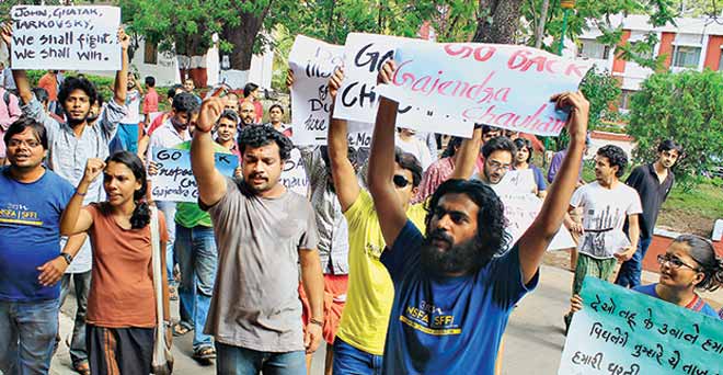 नई सिफारिश ने एफटीआईआई के माहौल को फिर से गरम कर दिया है। छात्र साल भर पहले की तरह सड़कों पर उतरने की बात कह रहे हैं। ‘मुजफ्फरनगर बाकी है’ फिल्म बनाने वाले डॉक्यूमेंट्री फिल्म मेकर और एफटीआईआई से पासआउट नकुल साहनी का कहना है कि ‘अब स्पष्ट हो गया है कि मौजूदा सरकार ने गजेंद्र चौहान को इंस्टीटयूट क्यों भेजा था। यह कोई पॉलिटेक्नीक इंस्टीटयूट नहीं है, जहां कोर्स करवाए जाएं। एफटीआईआई की स्थापना के पीछे उद्देश्य था कि सिनेमा के विभिन्न आयामों को समझा जाए, हाशिए के मुद्दों, समाज के मुद्दों पर अलग तरीके से सिनेमा के जरिये काम किया जाए। छात्र बेहतरीन तक्नीक से वाकिफ हों।’ नकुल का कहना है कि एफटीआईआई विदेशों में भी हिंदोस्तान की पहचान है। छोटे से छोटे गांव से भी लोग यहां पढ़ना आते हैं। उनके अनुसार जो संस्थान सरकार की विचारधारा से इत्तेफाक नहीं रखते हैं और जहां से पढ़ने वाले छात्र सवाल करते हैं, सरकार उन्हें खत्म करने पर उतारू हैं।
