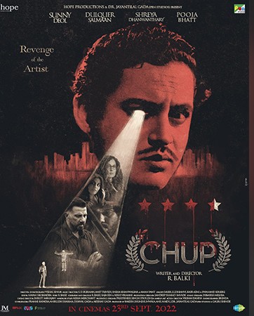 "चुप "आर बाल्की द्वारा निर्देशित है। इसका निर्माण राकेश झुनझुनवाला, अनिल नायडू, डॉ. जयंतीलाल गड़ा (पेन स्टूडियो) और गौरी शिंदे द्वारा किया गया है। मूल कहानी आर बाल्की की है, पटकथा और संवाद आर बाल्की और समीक्षक से लेखक बने राजा सेन ने ऋषि विरमानी के साथ मिलकर लिखा है। फिल्म में एस डी बर्मन, अमित त्रिवेदी, स्नेहा खानवलकर और अमन पंत का संगीत है। फिल्म में साहिर लुधियानवी, कैफ़ी आज़मी, स्वानंद किरकिरे के गीत है। फिल्म ‘चुप’ 23 सितंबर सन 2022 को रिलीज होगी।