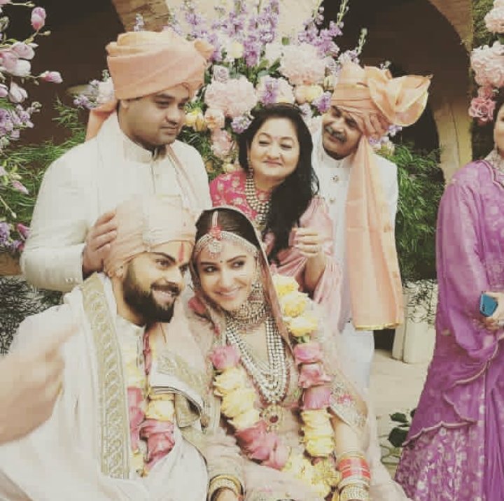 इंडियन क्रिकेट टीम के कैप्टन विराट कोहली ने सोमवार को इटली के शहर फ्लोरेंस में बॉलीवुड एक्ट्रेस अनुष्का शर्मा के साथ सात फेरे लिए। इस आयोजन को जहां तक हो सके, गुप्त रखा गया, लेकिन अब दोनों की शादी और उससे जुड़ी की रस्मों की तस्वीरें भी सामने आ रही हैं।