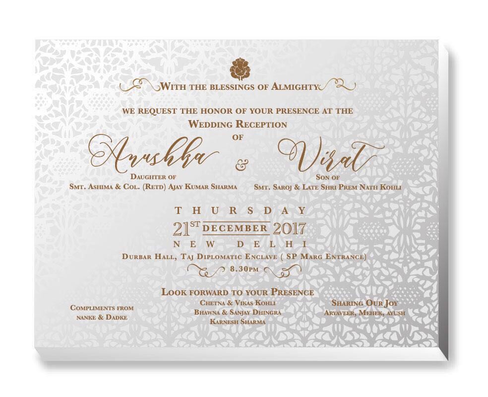 21 दिसंबर को मुंबई में होने वाले विराट-अनुष्का के रिसेप्शन का कार्ड....