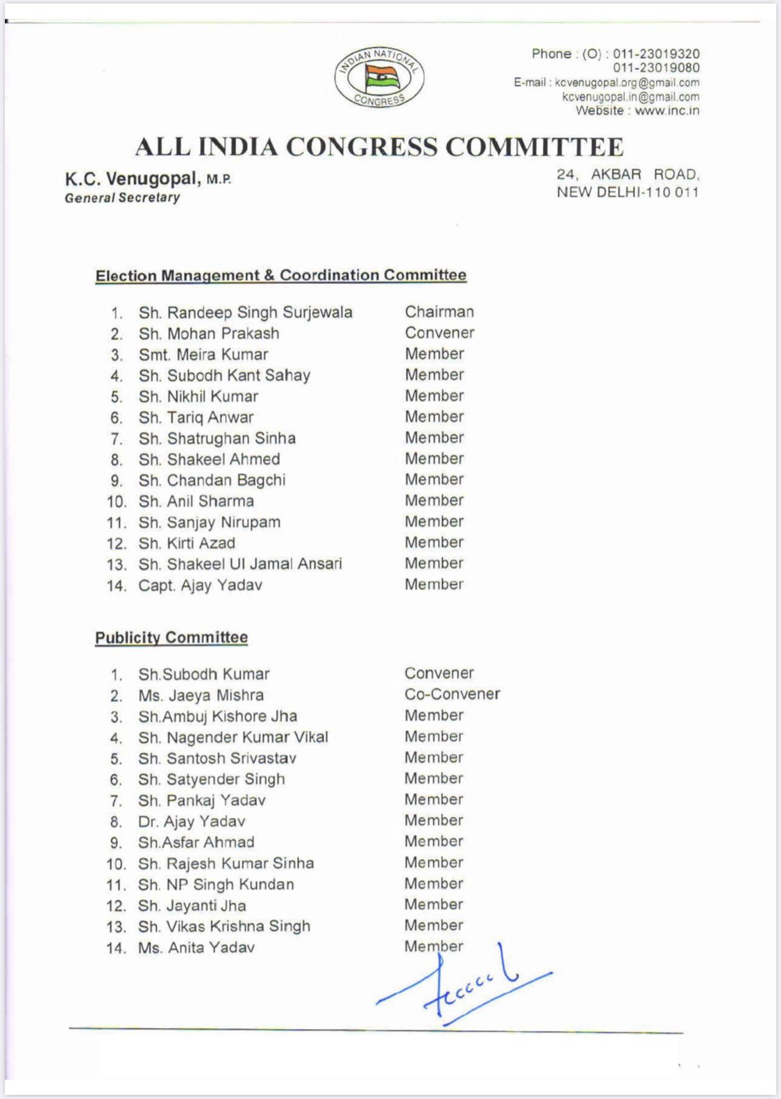 कांग्रेस की ओर से निर्वाचन आयोग को स्टार प्रचारकों की जो लिस्ट भेजी गई है, उसमें 30 नेताओं के नाम हैं. इसमें कांग्रेस के शीर्ष नेताओं के अलावा राजस्थान के मुख्यमंत्री अशोक गहलोत, पंजाब के मुख्यमंत्री अमरिंदर सिंह एवं छत्तीसगढ़ के मुख्यमंत्री भूपेश बघेल, पूर्व लोकसभा अध्यक्ष मीरा कुमार, राज्यसभा में नेता प्रतिपक्ष गुलाम नबी आजाद, प्रदेश कांग्रेस कमेटी के अध्यक्ष मदन मोहन झा, आरएस सुरजेवाला और प्रभारी शक्ति सिंह गोहिल के नाम शामिल हैं।