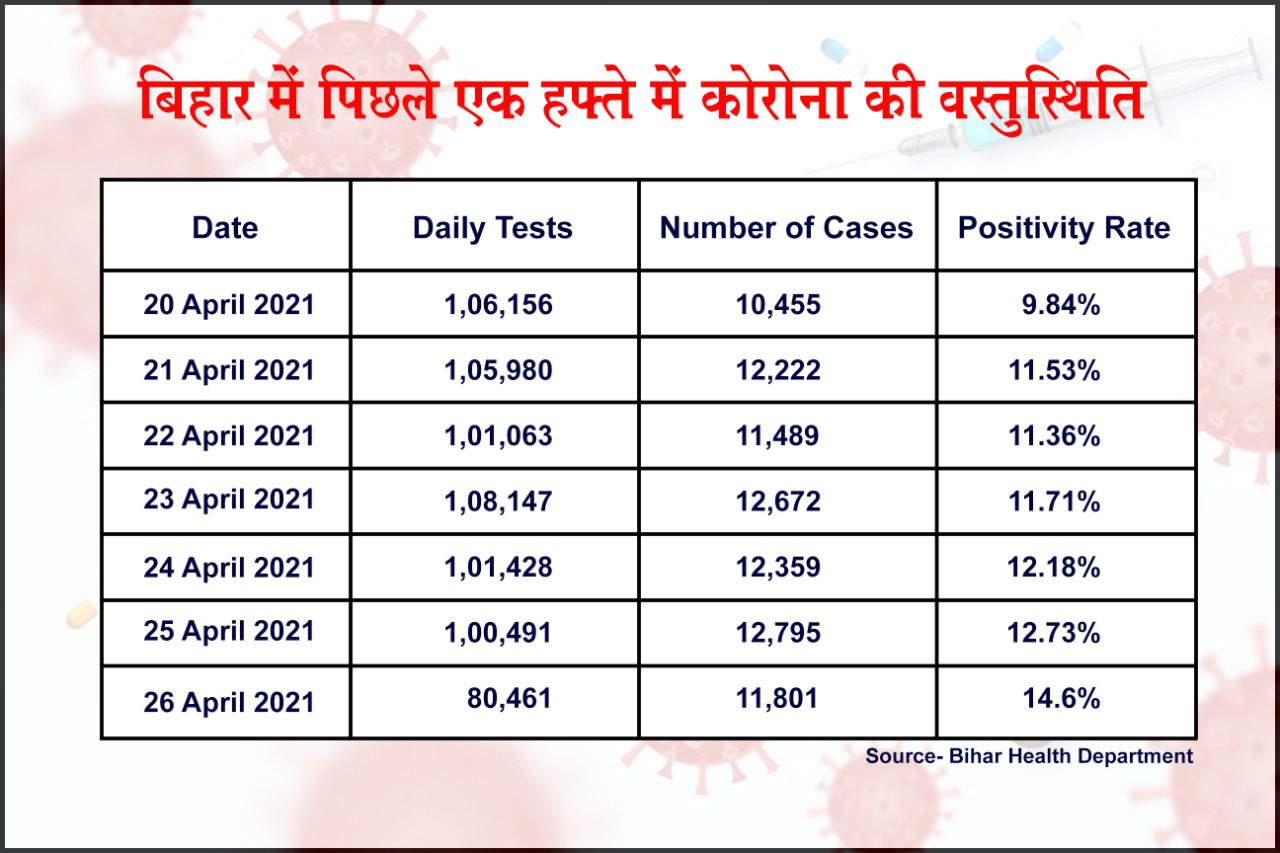 तेजस्वी ने अपने ट्वीट में कहा कि आप जांच घटा रहे है, लेकिन पॉजिटिव रेट बढ़ गया है। जाँच कम होने से संक्रमण की वास्तविकता नहीं मालूम होगी, उसका फैलाव बढ़ता जाएगा।