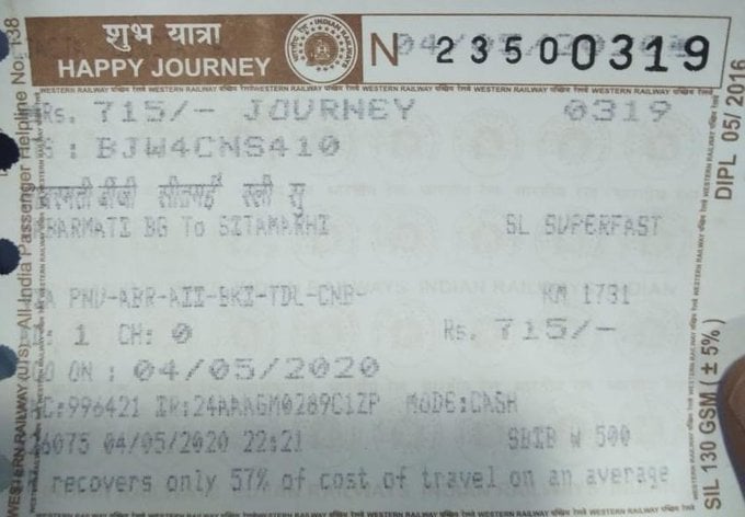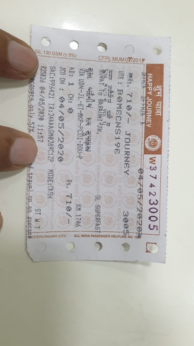 ये गुजरात के सूरत का टिकट है जो 4/5/20 को लिया गया है