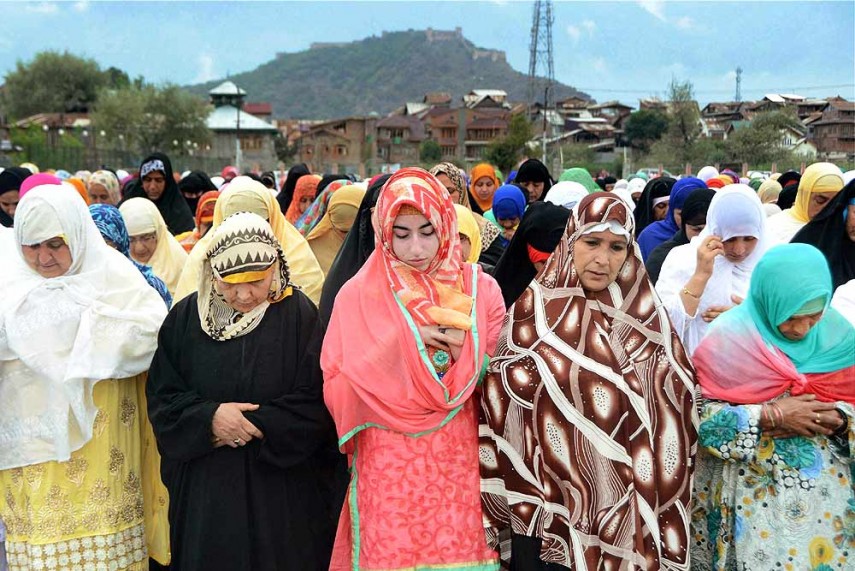 श्रीनगर में ईद के दौरान ईदगाह में अल्लाह को याद करती महिलाएं