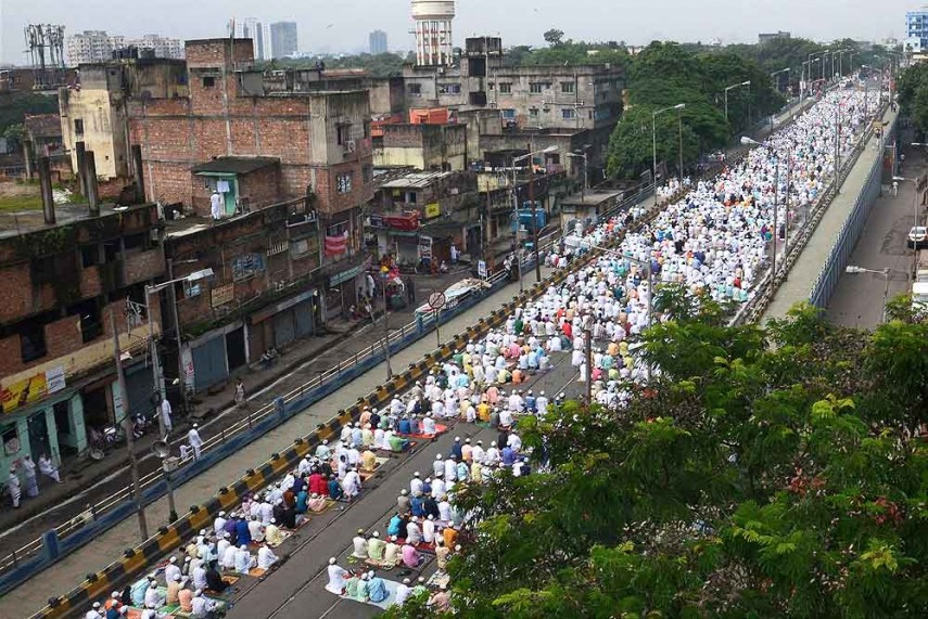 उत्तरी कोलकाता में फ्लाईओवर पर ईद के अवसर पर इबादत करते मुसलमान