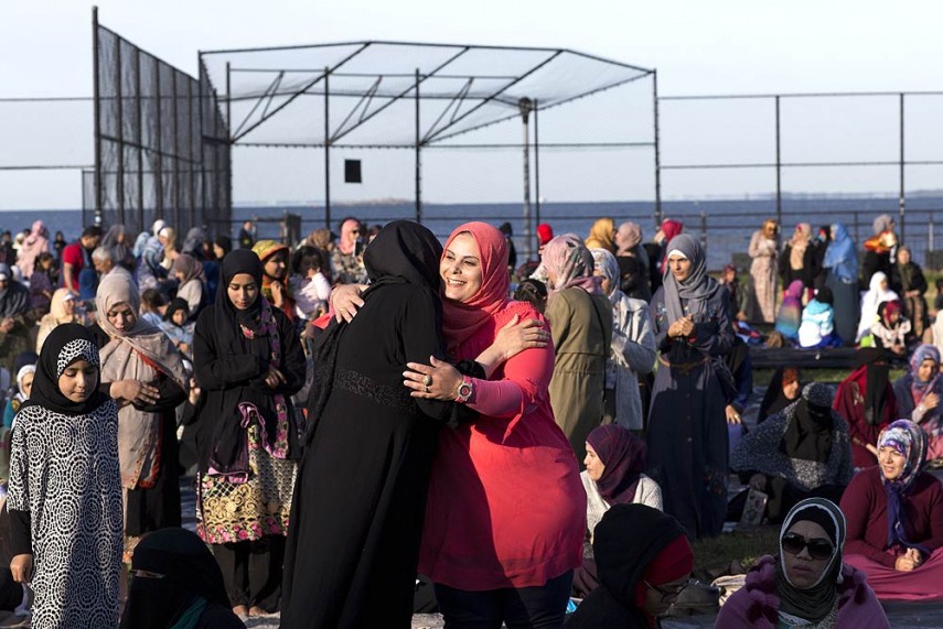 न्यू यॉर्क में ईद के अवसर पर एक दूसरे को मुबारकबाद देती मुस्लिम महिलाएं..