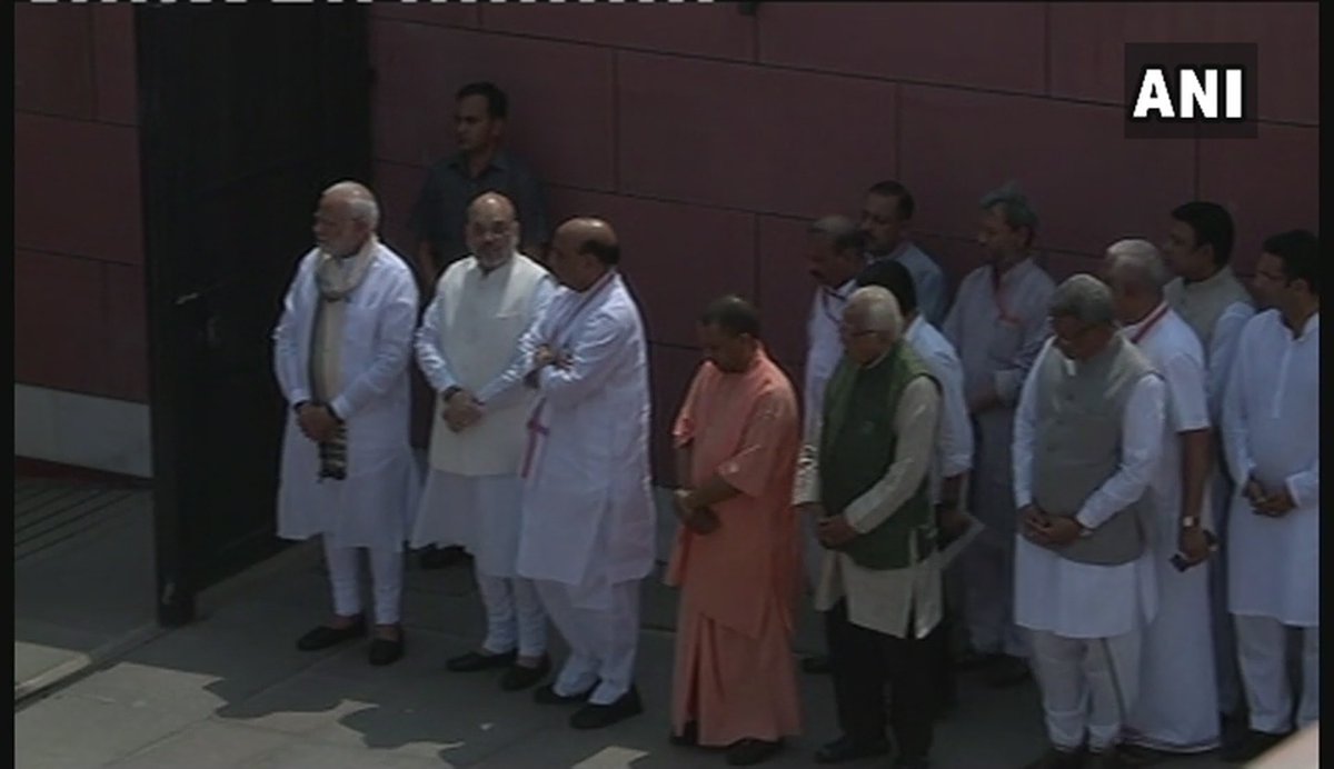 भाजपा मुख्यालय के बाहर अटल के पार्थिव शरीर का इंतजार करते पीएम मोदी, अमित शाह, सीएम योगी...