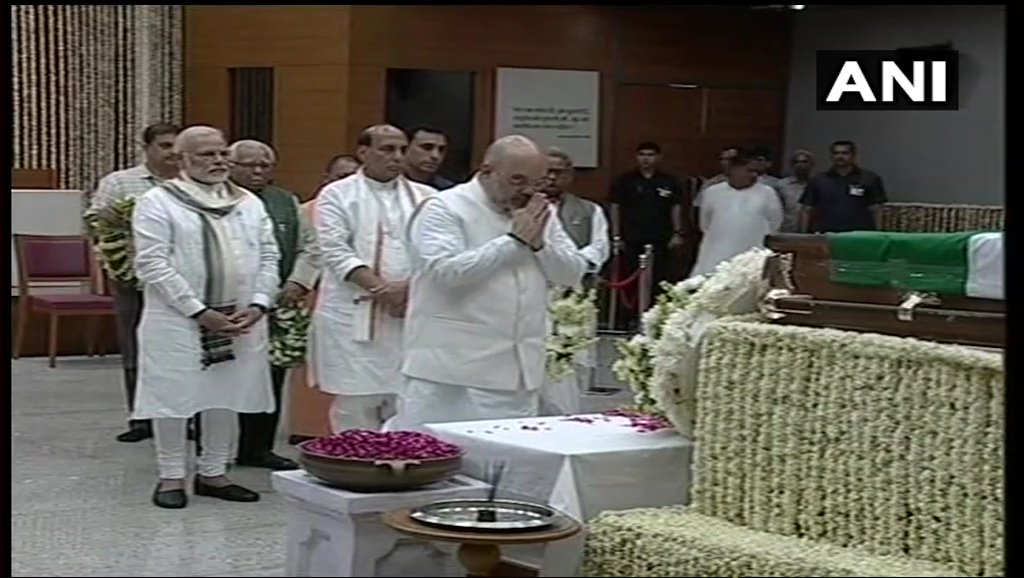 वाजपेयी के अंतिम दर्शन करते भाजपा के राष्ट्रीय अध्यक्ष अमित शाह और राजनाथ सिंह.....