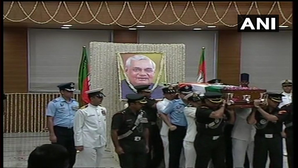 जवानों के कंधे पर पूर्व प्रधानमंत्री अटल जी का पार्थिव शरीर...