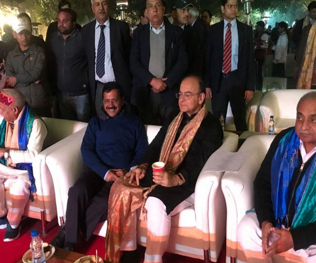 गुरुवार को जीएसटी काउंसिल की बैठक में आए लोगों के लिए रखी गई डिनर पार्टी में जीएसटी का नेतृत्व कर रहे अरुण जेटली और दिल्ली के मुख्यमंत्री अरविंद केजरीवाल डिनर पार्टी में एक साथ नजर आए। दोनों एक-दूसरे की बातों पर ठहाके भी लगाते नजर आए। इस कार्यक्रम की तस्वीरों को देखकर कहा जा सकता है कि उनके बीच बातचीत के दौरान दोनों के चेहरों पर मुस्कराहट दिख रही थी।