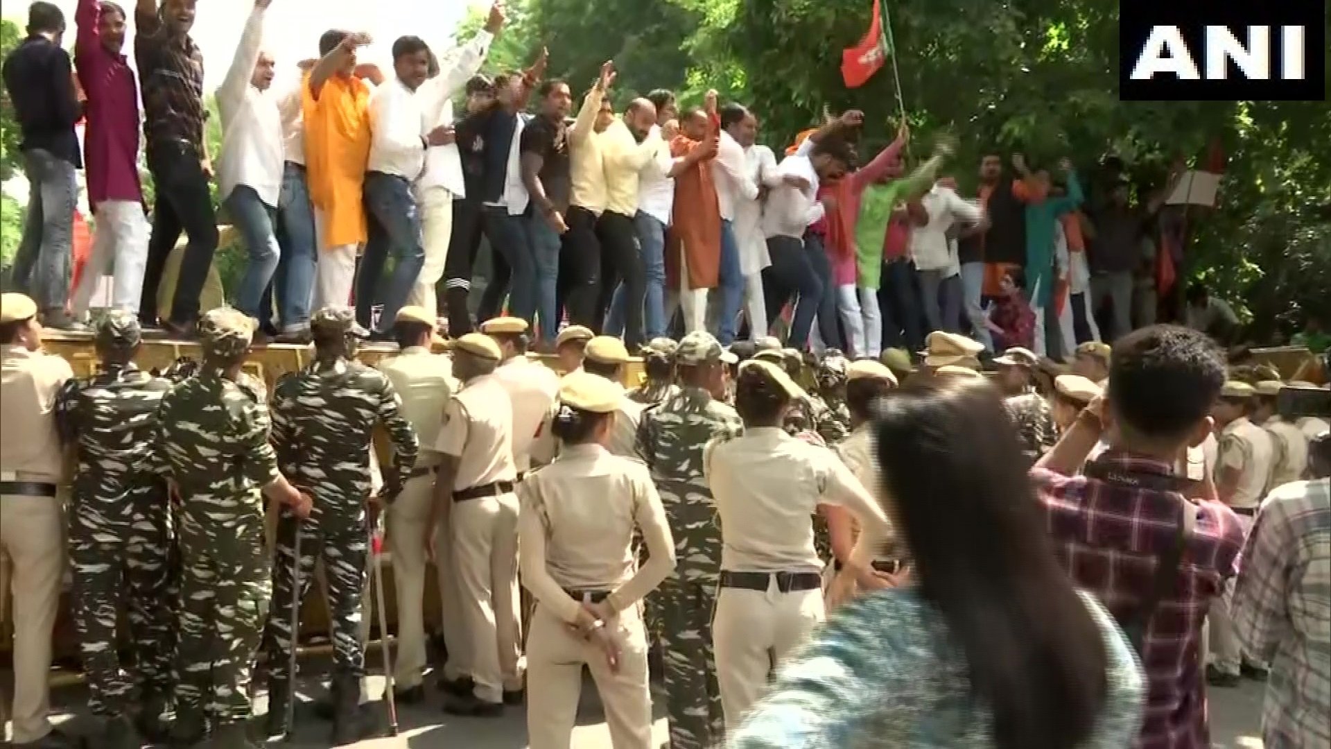 केजरीवाल के घर के सामने बीजेपी कार्यकर्ताओं का प्रदर्शन