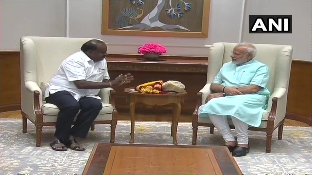 प्रधानमंत्री नरेंद्र मोदी से चर्चा करते सीएम एचडी कुमारस्वामी