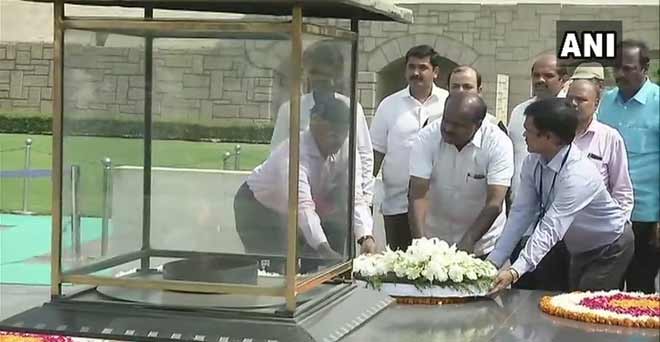 राष्ट्रपिता महात्मा गांधी को श्रद्धांजलि देते सीएम कुमारस्वामी