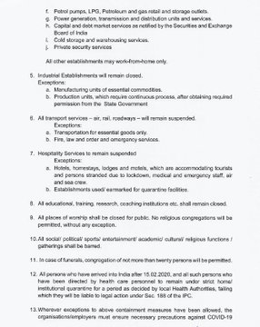 प्रधानमंत्री के राष्ट्र के नाम संदेश के बाद, गृहमंत्रालय ने लॉक डाउन के संबंध में पूरी लिस्ट जारी की है, आइए जानते हैं इस दौरान क्या खुलेगा और क्या बंद रहेगा...