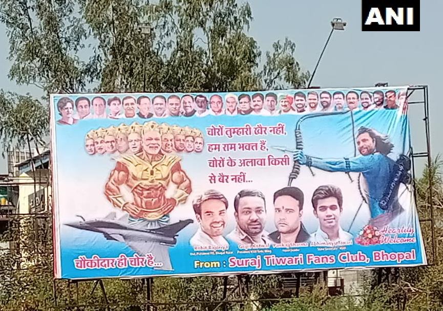भोपाल में लगे एक पोस्टर में धनुष-बाण हाथ में लिए राहुल गांधी को 'राम' के रूप में दिखाया है। वहीं, प्रधानमंत्री नरेंद्र मोदी को 'रावण' के रूप में दिखाया गया है। इस पोस्टर में बीजेपी पर निशाना साधते हुए लिखा है- 'चोरों तुम्हारी खैर नहीं, हम राम भक्त हैं, चोरों के अलावा किसी से बैर नहीं।'