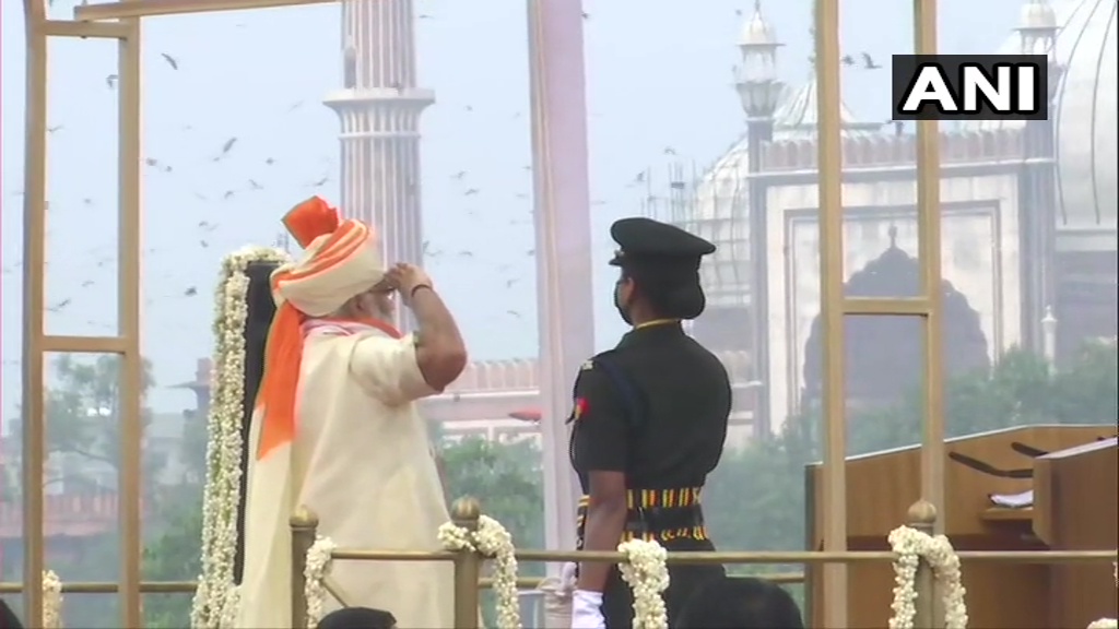 ध्वजारोहण से पहले प्रधानमंत्री नरेंद्र मोदी ने राजघाट जाकर राष्ट्रपिता महात्मा गांधी को श्रद्धांजलि दी।
