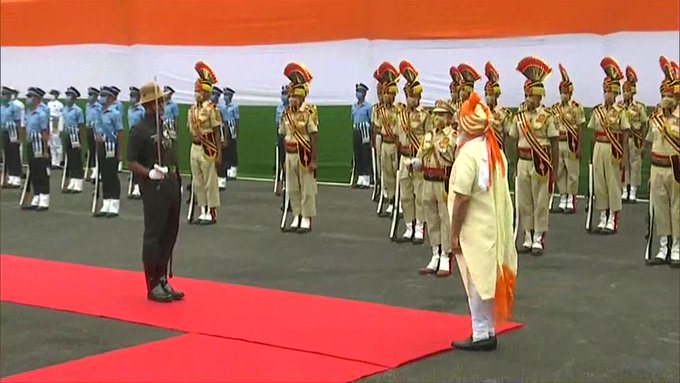 इसके बाद प्रधानमंत्री नरेंद्र मोदी को गार्ड ऑफ ऑनर दिया गया।