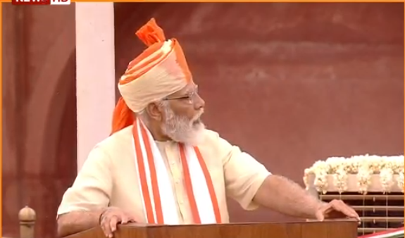 ध्वजारोहण के बाद देश को संबोधित करते प्रधानमंत्री नरेंद्र मोदी।