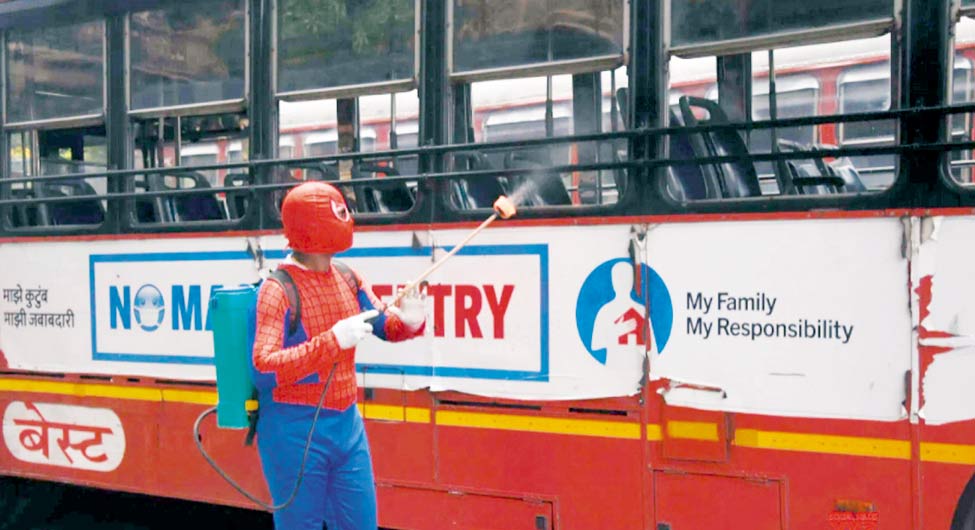 मुंबई के सामाजिक कार्यकर्ता और सायन फ्रेंड सर्किल फाउंडेशन के अध्यक्ष अशोक कुर्मी इन दिनों मुंबई की सड़कों पर स्पाइडरमैन की ड्रेस में लोगों को कोविड-19 से बचाने का काम कर रहे हैं। असल में अशोक स्पाइडरमैन की ड्रेस पहन कर मुंबई के विभिन्न इलाकों में बस स्टैण्ड और बसों को सैनिटाइज करने का काम कर रहे हैं। उनकी पीठ पर एक सैनिटाइजेशन किट बंधी रहती है। सैनिटाइजेशन के साथ वे लोगों को मास्क पहनने और सोशल डिस्टेंसिंग के लिए जागरूक करने का भी काम कर रहे हैं। स्पाइडरमैन की ड्रेस पहन कर सैनिटाइजेशन करने का मकसद यह है कि उन्हें ऐसा करता देख लोग याद रखें। इससे उन्हें सैनिटाइजेशन, मास्क और सोशल डिस्टेसिंग का पालन करने का सबक भी याद रहेगा।