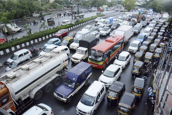 मुंबई में लॉकडाउन के बाद मुलुंड टोल नाका पर ट्रैफिक जाम शुरू (PTI)