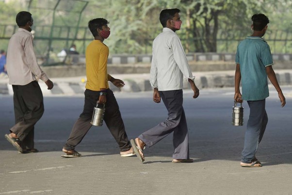 नई दिल्ली में कोविड -19 लॉकडाउन की अनलॉक प्रक्रिया शुरू होने के बाद काम पर वापस जाते मजदूर (PTI)