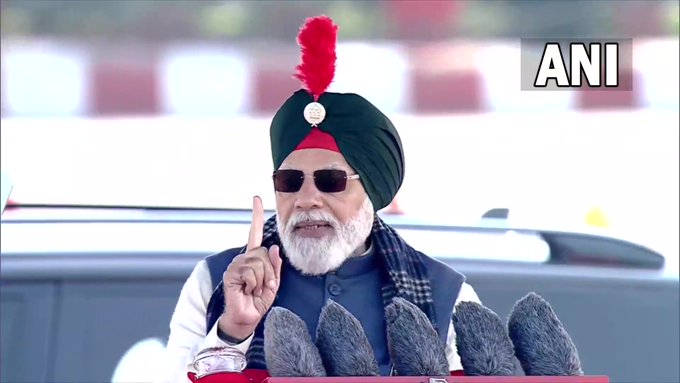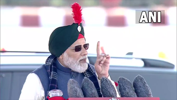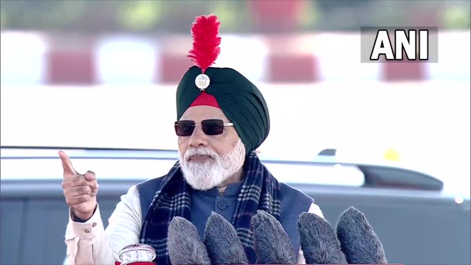 इससे पहले कार्यक्रम के दौरान प्रधानमंत्री ने गार्ड ऑफ ऑनर का निरीक्षण और मार्च पास्ट की समीक्षा की। कार्यक्रम का आयोजन दिल्ली में मौजूद करियप्पा परेड ग्राउंड में हो रहा है।