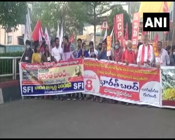 आंध्र प्रदेश: कृषि कानूनों के खिलाफ बुलाए गए भारत बंद के समर्थन में विशाखापट्टनम में लेफ्ट पार्टियों ने विरोध प्रदर्शन किया।
