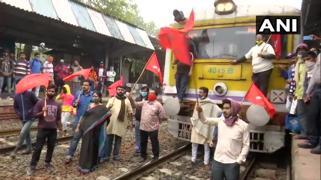 पश्चिम बंगाल: कोलकाता में भारत बंद के समर्थन में विरोध प्रदर्शन कर रही लेफ्ट पार्टियों ने जादवपुर में रेल रोकी।