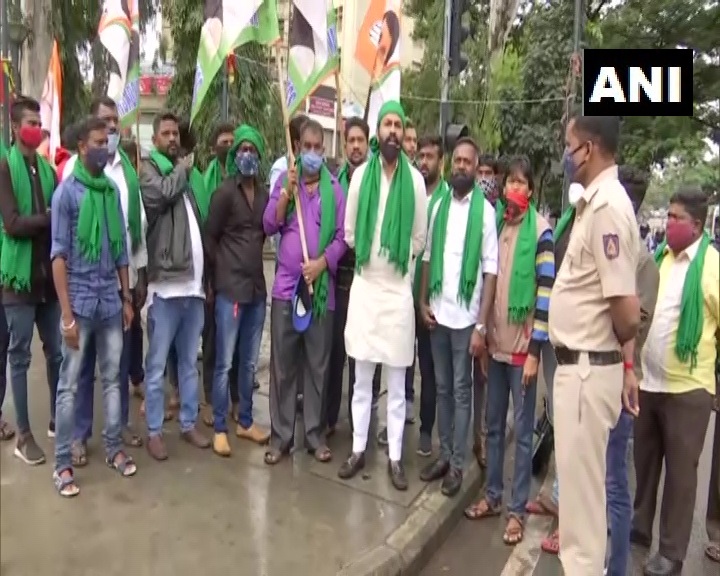 कर्नाटक: किसानों के भारत बंद के समर्थन में बेंगलुरु में कांग्रेस कार्यकर्ताओं ने विरोध प्रदर्शन किया।