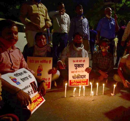 हाथरस में 19 वर्षीय दलित महिला की मौत के विरोध में जंतर-मंतर पर धरना देते प्रदर्शनकारी।