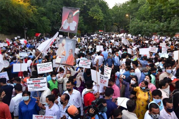 हाथरस बलात्कार और हत्या के विरोध में गुस्साए नागरिक दिल्ली के जंतर मंतर इलाके में इकट्ठा हुए। देखिए, तस्वीरें