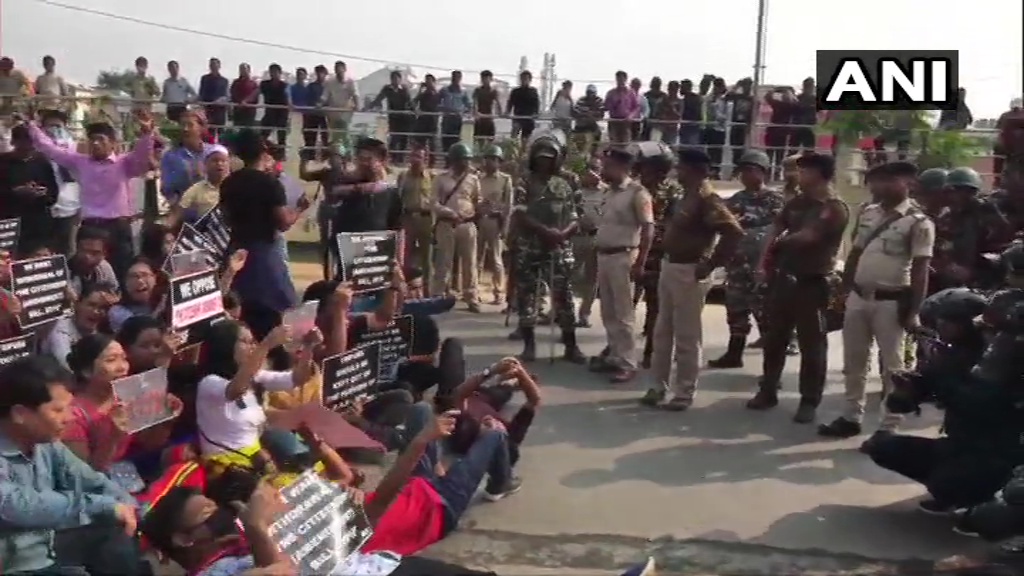 - नागरिकता संशोधन बिल के खिलाफ त्रिपुरा के अगरतला में विरोध प्रदर्शन