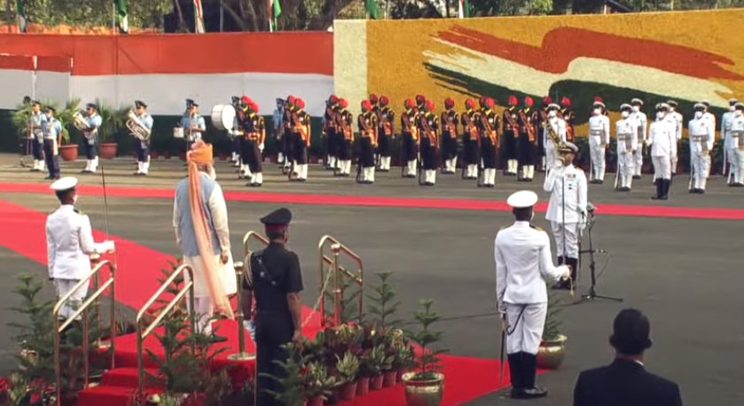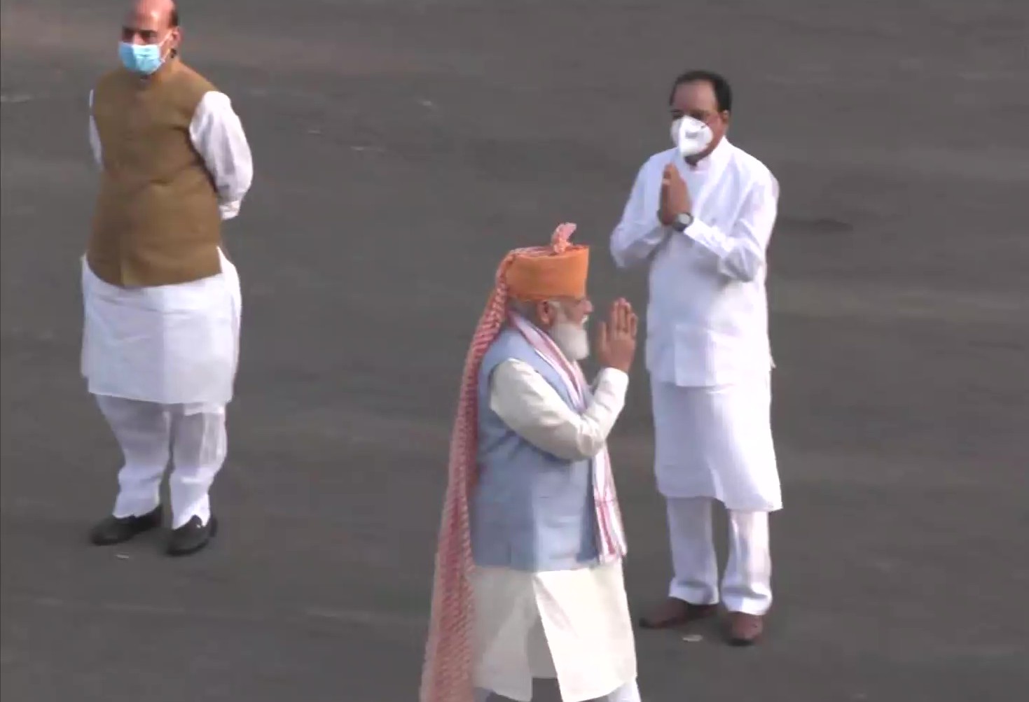 प्रधानमंत्री नरेंद्र मोदी ने लाल किले पर गार्ड ऑफ ऑनर का निरीक्षण किया।