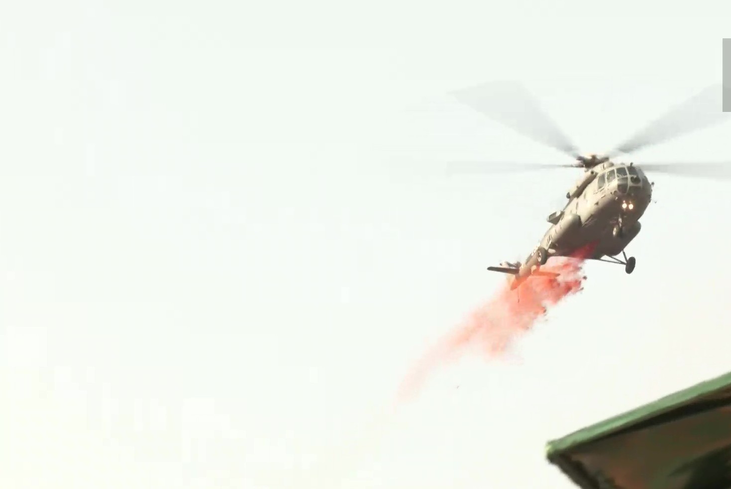 लालकिले पर पहली बार तीन हेलीकॉप्टरों से फूलों की वर्षा हुई।