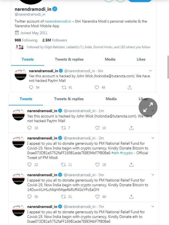 पीएम मोदी की निजी वेबसाइट के ट्विटर अकाउंट पर किए गए एक ट्वीट में लिखा है: "मैं आप सभी से अपील करता हूं कि कोविद -19 के लिए पीएम राष्ट्रीय राहत कोष में उदारता से दान करें, अब भारत क्रिप्टो करेंसी से शुरू होता है, कृपया 0xe073DB1e5752faFF169B1ede7E8E94bF7f80B80806 पर क्रिप्टो करेंसी दान करें।