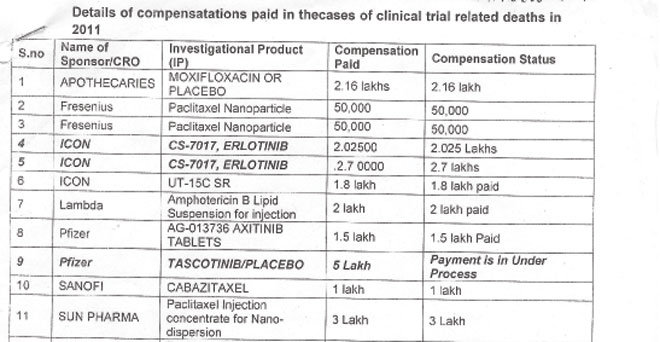 पड़ा। लेकिन सरकार को यह नहीं पता कि ये तमाम लोग कहां मारे गए या उन पर किस दवा कंपनी ने ञ्चया प्रयोग किए थे।