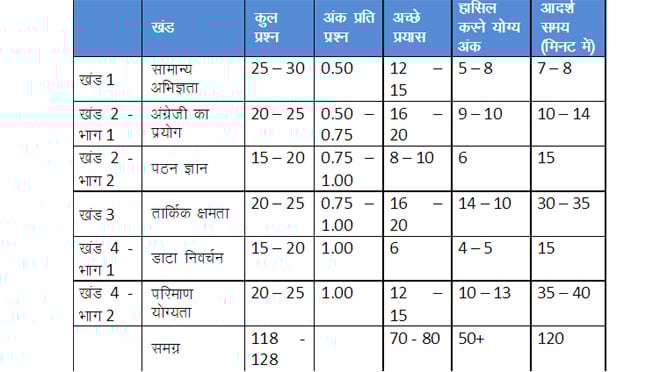 परीक्षा का सामान्य पैटर्न नीचे दिया जा रहा है-