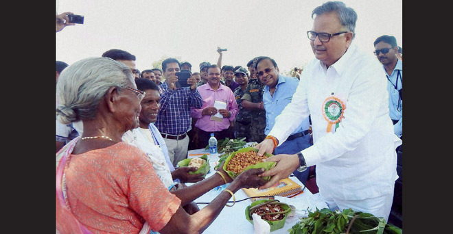 अबूझमाड़ के बासिंग में रमन सिंह के हेलिकाप्टर की आवाज सुनकर कुछ लोग देखने पहुंचते हैं। कुछ मुख्यमंत्री को पहचान पाते हैं और कुछ अनभिज्ञ दिखते हैं। थोड़ी ही देर में वहां चौपाल लगती है। बातें होने लगती है। फिर नक्सल प्रभावित बीजापुर जिले में चौपाल लगती है रतिराम की बाड़ी में। यहां मातृ मृत्यु दर बहुत ज्यादा है। सबसे बड़ा कारण यह कि सड़क ही नहीं है। सुकमा जिले के इंजरम से भेज्जी मार्ग पर बन रही सड़क पर नक्सलियों ने अब तक 53 ब्लास्ट किए हैं। इंजरम से भेज्जी तक सड़क मार्ग पर माओवादियों का कब्जा है। इसी इलाके के ताड़मेटला में माओवादियों ने सीआरपीएफ के 76 जवानों को मार डाला था। उर्पलमेटा में 24 जवानों की मुठभेड़ में मौत हो गई थी। थाना परिसरों के बाहर एक तरह से माओवादियों का अघोषित कब्जा है। हर कदम पर बिछे लैंड माइन और माओवादियों की सशस्त्र टुकडिय़ों से आए दिन मुठभेड़ की खबरें आम हैं। भेज्जी इलाके में डा. रमन सिंह मोटर साइकिल पर घूमते हैं और सीधे ग्रामीणों से संवाद करते हैं। भेज्जी गांव को दोबारा बसाया गया है।