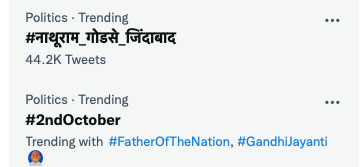 गांधी जयंती के अवसर पर सोशल मीडिया पर 'नाथूराम गोडसे जिंदाबाद' के ट्रेंड कर रहा है जिसे लेकर भारतीय जनता पार्ट (भाजपा) के सांसद वरुण गांधी ने नाराजगी जाहिर की है। इसे लेकर उन्होंने कहा है कि ऐसे ही लोग देश को शर्मसार कर रहे हैं।