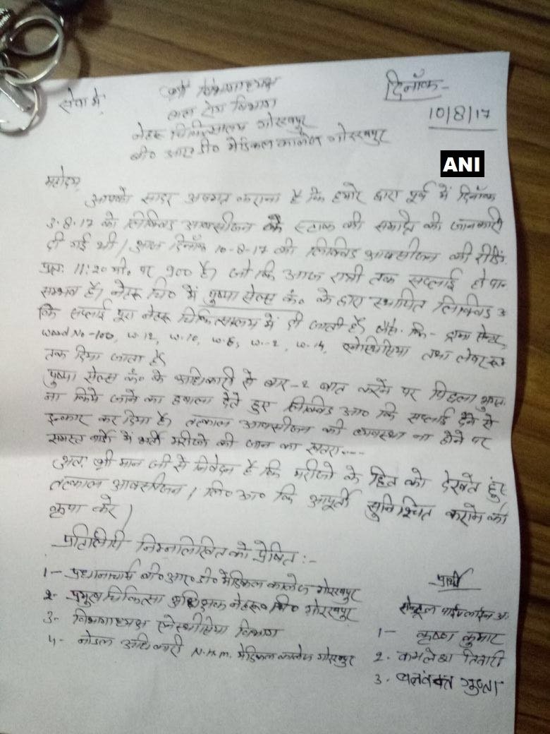 10 अगस्त को दी थी ऑक्सीजन की कमी की जानकारी