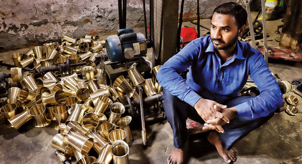 आम तौर पर ईद से पहले बड़े बिजनेस पुराने ऑर्डर पूरे कर देते हैं, क्योंकि वे जानते हैं कि कर्मचारी छुट्टी पर चले जाएंगे। इससे सहायक इकाइयों और परवेज जैसे सब-वेंडर को काफी काम मिल जाता है। लेकिन 2021 में ऐसा नहीं हुआ। साल की शुरुआत में हालात थोड़े बेहतर होने शुरू हुए, लेकिन अप्रैल में कोरोना की दूसरी लहर के चलते कारोबार फिर नीचे आने लगा। सभी सेक्टर में हालत खराब होने के कारण भुगतान मिलने में देरी होने लगी। वे बताते हैं, “पूरी प्रक्रिया एक दूसरे से जुड़ी है। हमें काम देने वाली इकाइयों को भुगतान में देरी का मतलब है कि हमें भी एक हफ्ते या ज्यादा समय तक इंतजार करना पड़ेगा।” इसके अलावा इस साल मार्च से अब तक पीतल की कीमत भी 100 रुपये प्रति किलो बढ़ गई है।